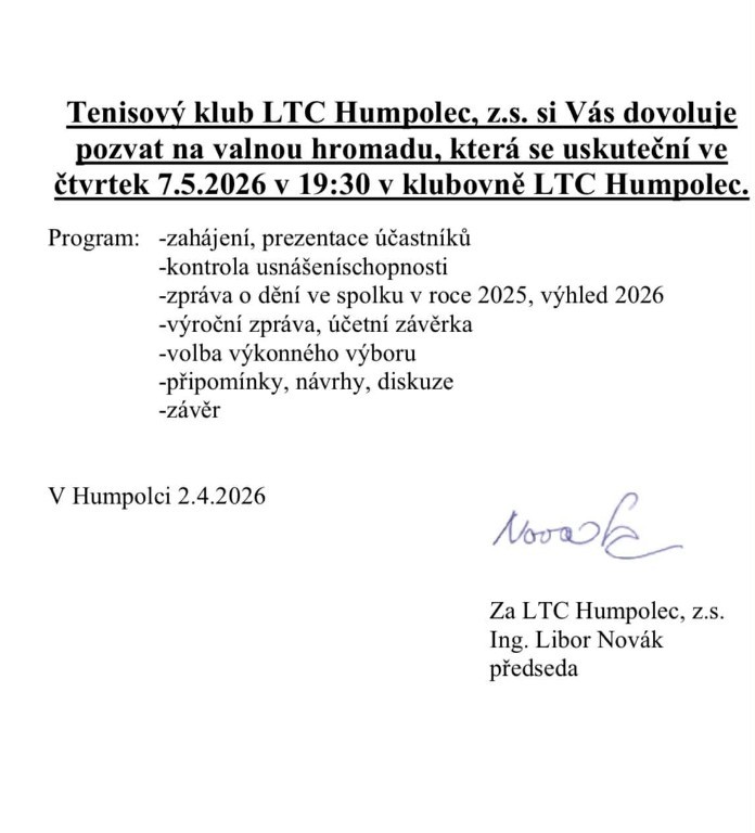 Pozvánka na valnou hromadu - čtvrtek 7. května od 19:30
