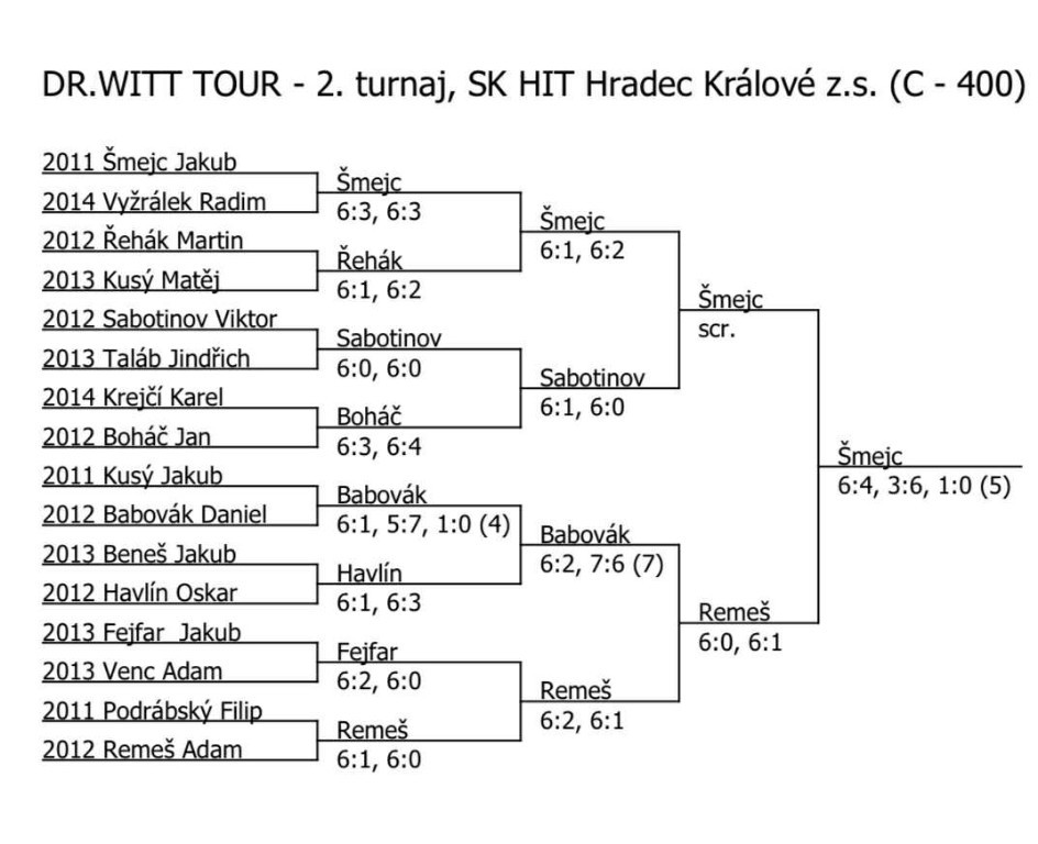 Na turnaje také vyrazili další hráči. Eliška Havlová na starších žákyních v Pelhřimově vybojovala druhé místo ve čtyřhře. Terka Šebístková skončila třetí ve čtyřhře na starších žákyních v Hradci Králové. Adam Venc byl na stejném turnaji rovněž na třetím místě ve čtyřhře. Tom Venc vyrazil na turnaj dorostu též do Hradce a skončil druhý ve dvouhře!
